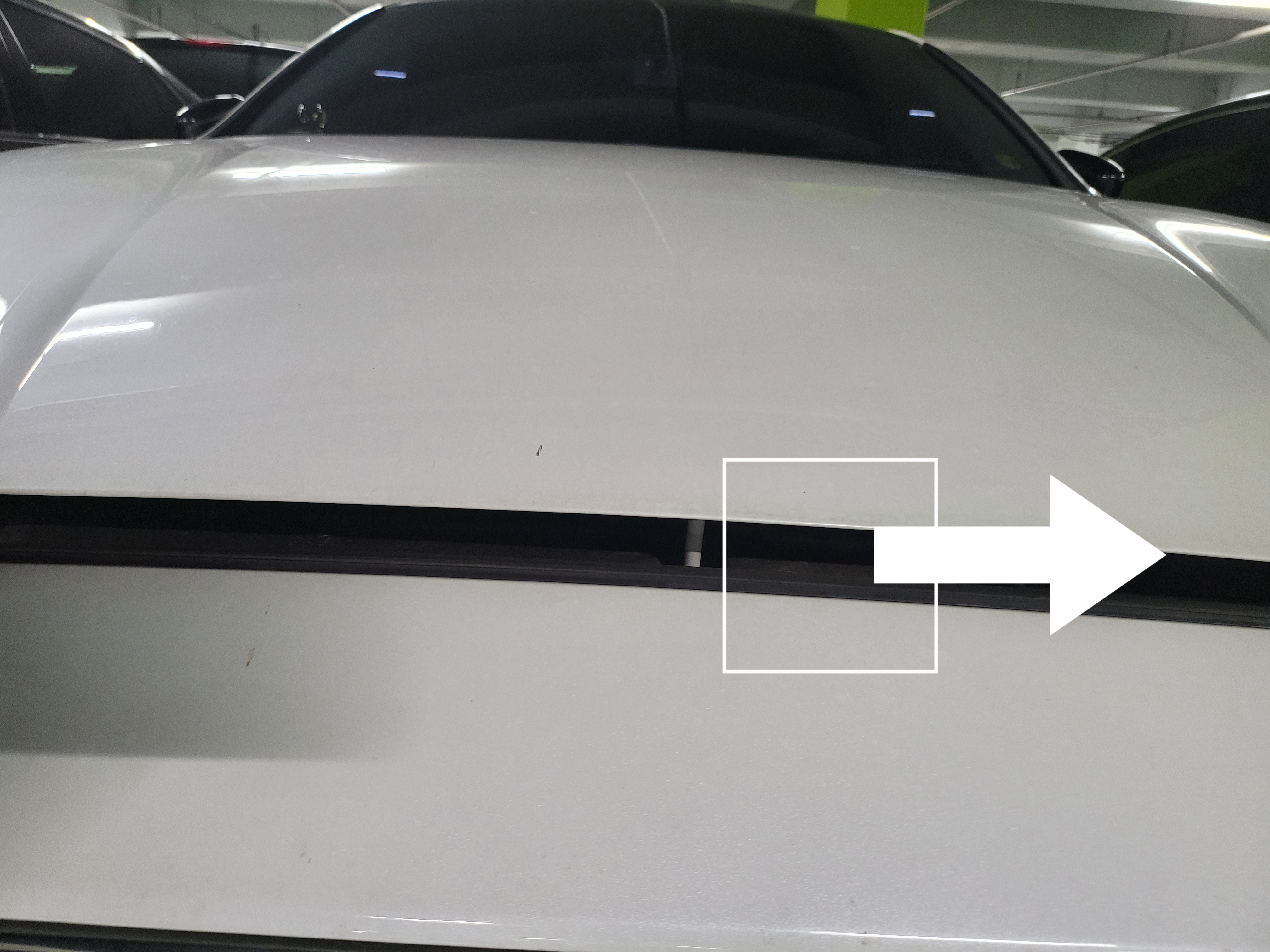차량의 본네트를 열고 워셔액 통을 찾습니다.