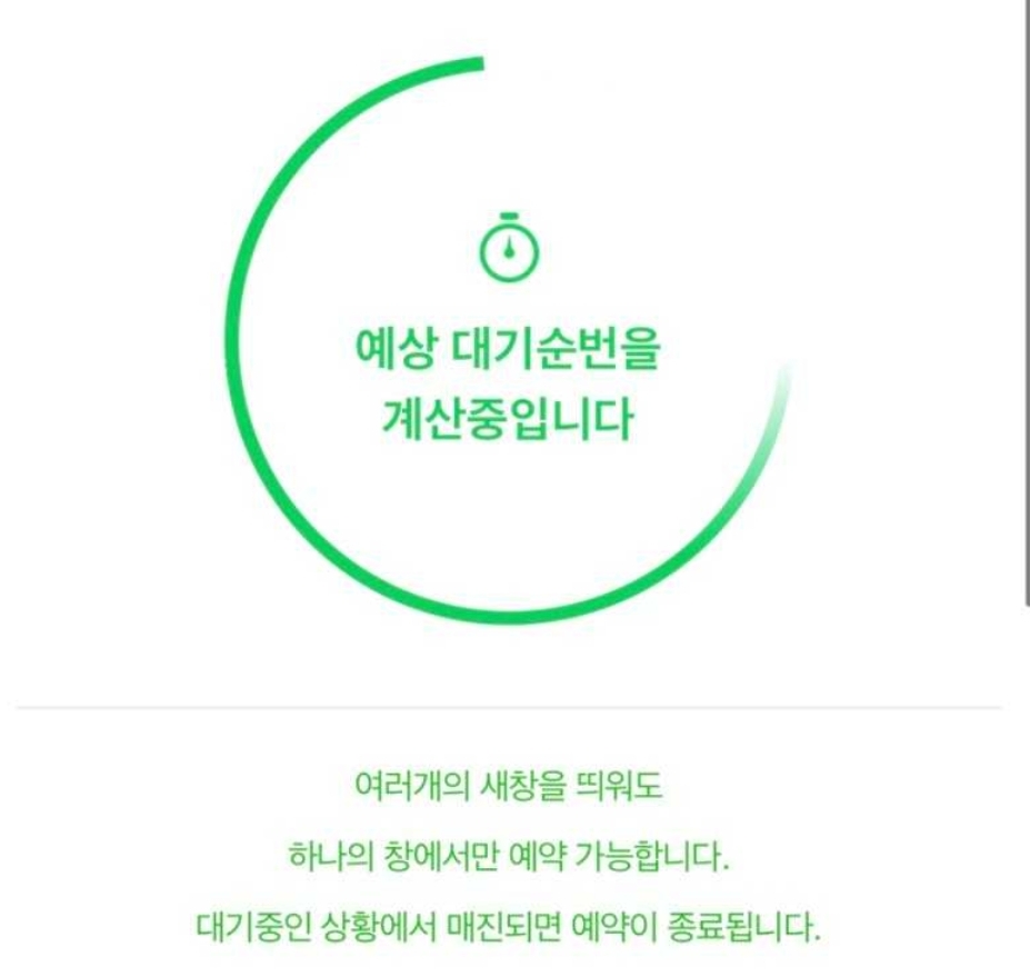 여러 개의 브라우저 창을 열어두는 것보다는 하나의 창에서만 예약을 시도하세요. 여러 창을 사용해도 예약은 한 창에서만 가능합니다.