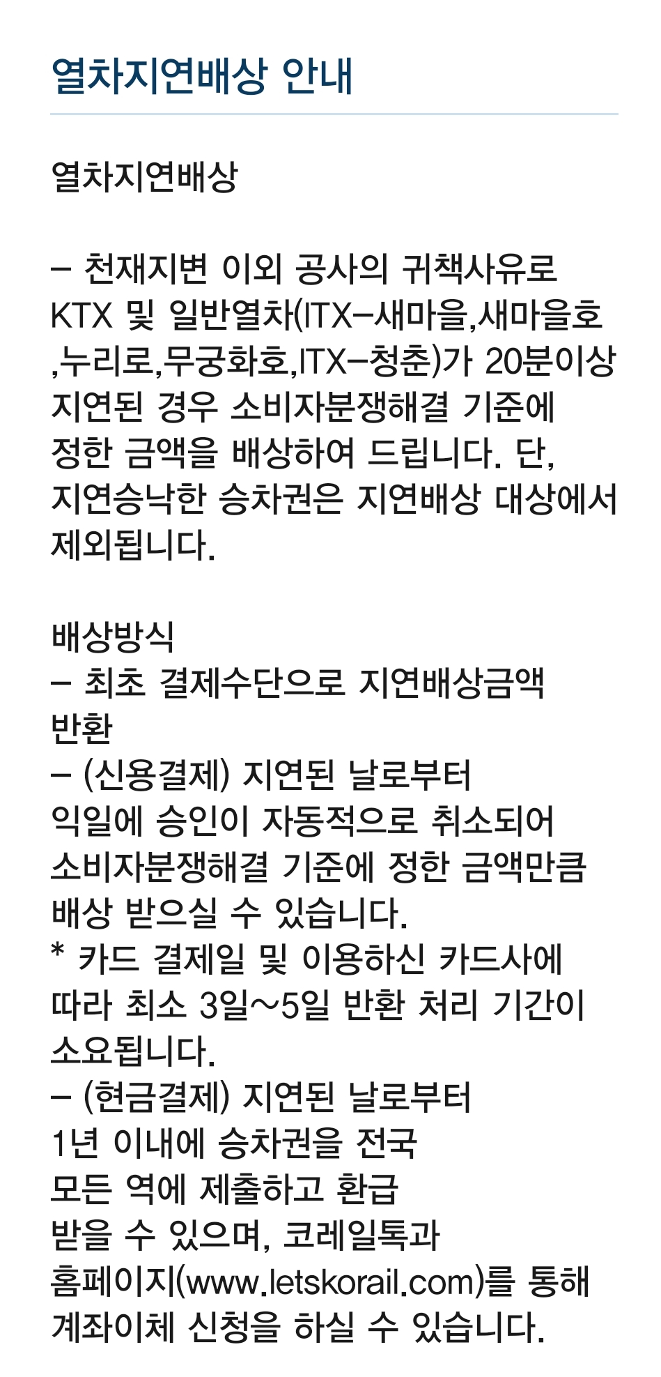 - 공사의 책임으로 인한 열차지연 시에만 배상이 이루어집니다.