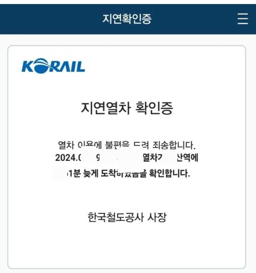 - 배상금액 = 3만원 × 50% = 15,000원2. 열차지연 확인증 발급 방법