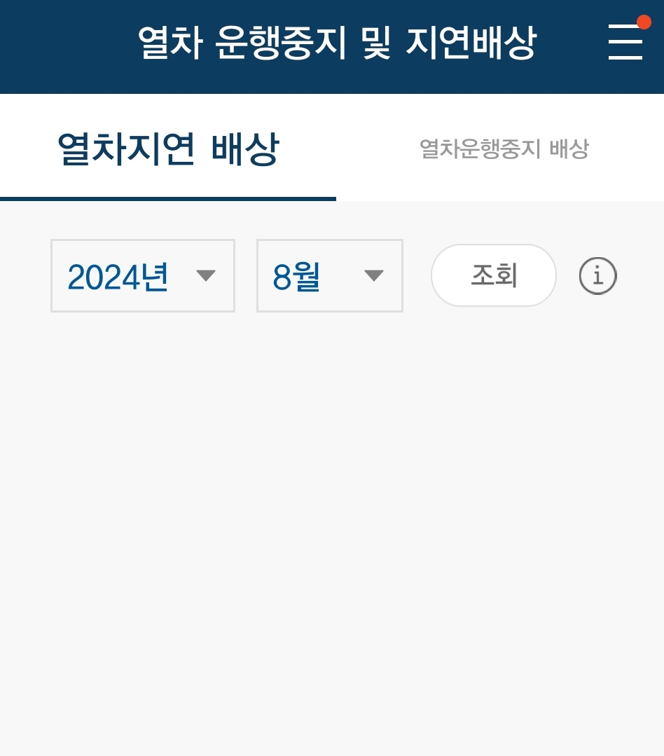 1. 코레일톡 앱 또는 웹사이트에서 '열차운행중지 및 지연배상' 메뉴 선택
