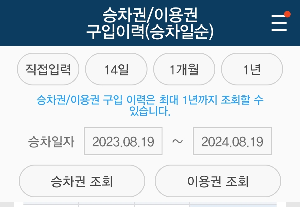 1. 코레일톡 앱 또는 웹사이트에서 '승차권구입이력' 메뉴로 이동