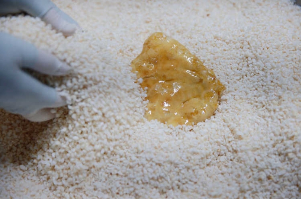 찹쌀 유과를 기름이 아닌 달구어진 옥돌에 구워 만듭니다. 옥돌은 한과에 고소하고 담백한 맛을 부여합니다.