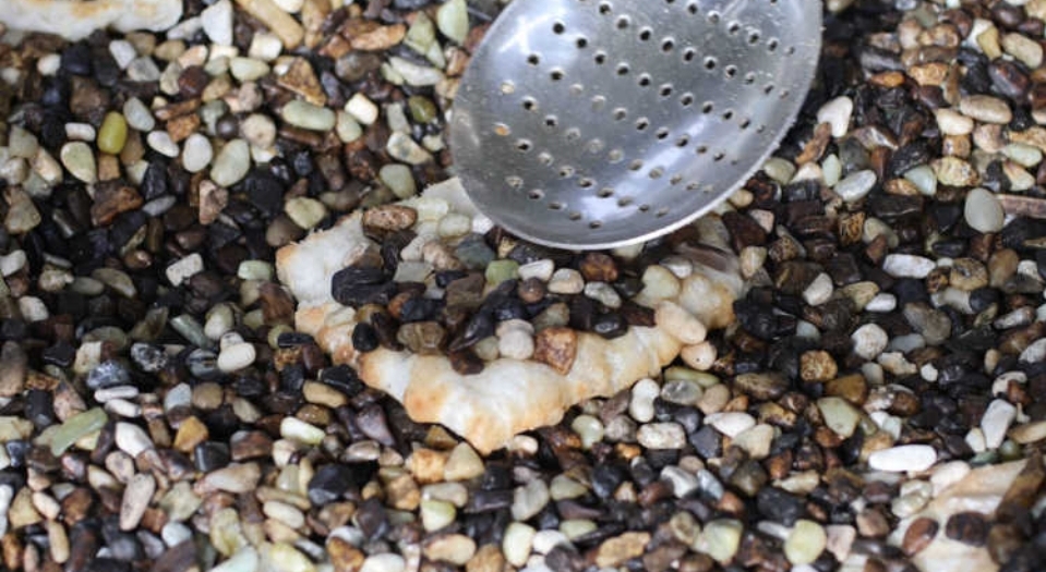 기름 대신 자갈로 굽는 방식을 사용합니다. 무쇠판 위에 자갈을 깔고 달궈서 그 위에 한과 반죽을 정성스레 하나씩 올려 구워집니다. 이 방식으로 구운 한과는 느끼한 맛이 없으며, 고소하고 담백한 맛이 특징입니다.