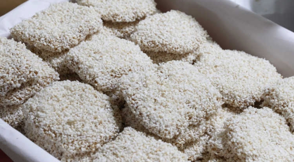 찹쌀 유과를 기름이 아닌 달구어진 옥돌에 구워 만듭니다. 옥돌은 한과에 고소하고 담백한 맛을 부여합니다.