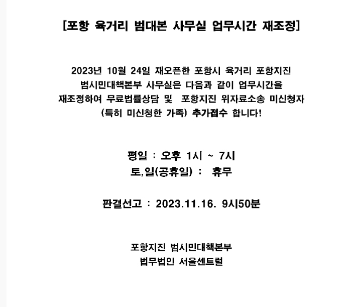 포항 육거리 범시민대책본부 사무실에서 현장접수도 가능하십니다.