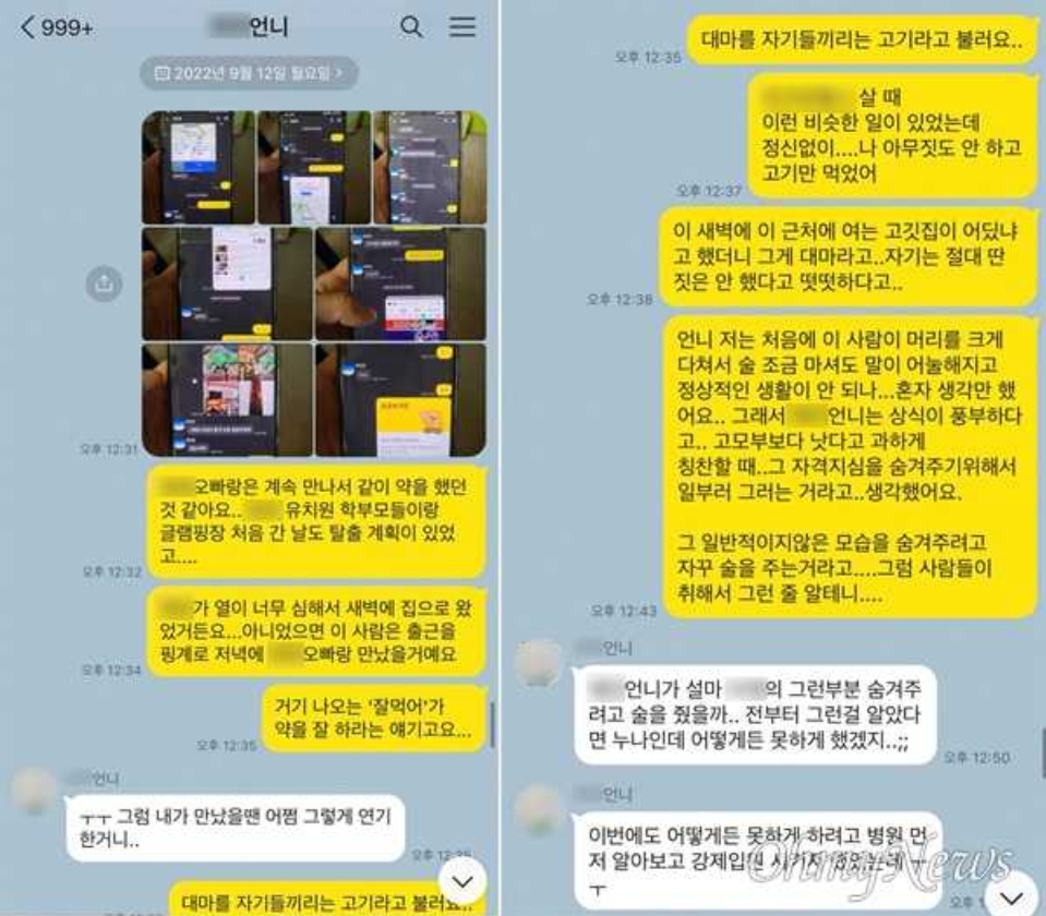 - 2021년 8월 21일, 둘째누나 A씨는 강씨에게 액상 마약 흡입 도구를 그린 것으로 보이는 이미지를 전송하며, 조씨에게는 말하지 말라고 부탁했습니다. 이 대화는 조씨의 마약 사용을 가족이 어떻게 인지하고 대처하려 했는지를 보여줍니다.
