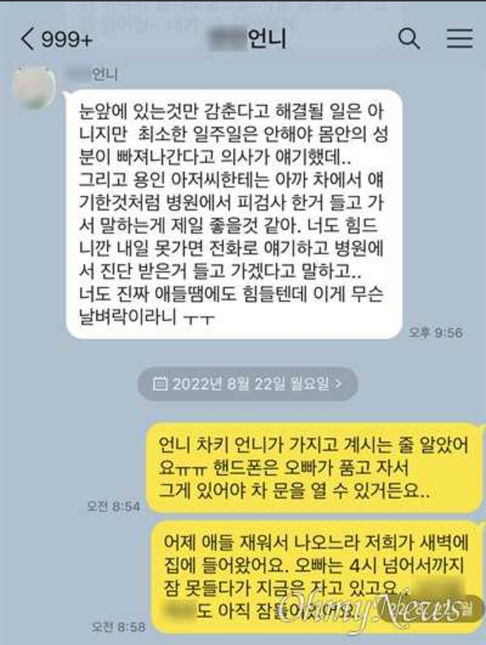 2. 가족 내부의 대화: 카카오톡 메시지 공개 (2021년 8월 21일)
