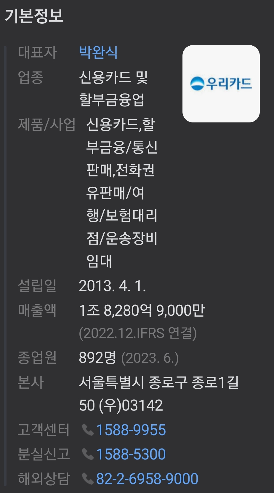 하지만 이는 명백한 사기 시도로, 실제 우리카드 고객센터 번호(1588 9955)와는 다릅니다.