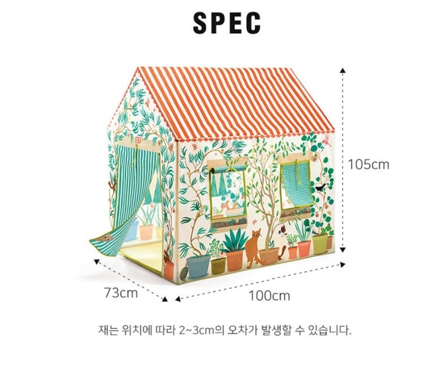 - **안전성**: 아이들이 안전하게 놀 수 있도록 설계된 이 텐트 하우스는 부모님들이 안심하고 아이들을 놀게 할 수 있는 공간을 제공합니다.