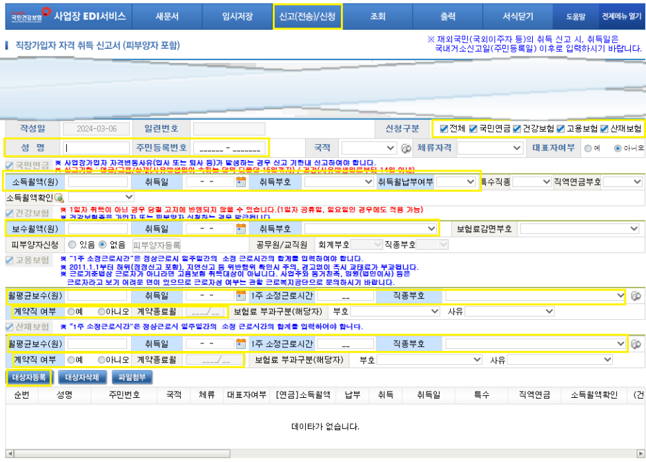 이러한 보험에 신규 직원을 등록하기 위해 우리는 EDI(전자문서교환) 시스템을 사용할 것입니다. 이 시스템을 통해 모든 신고 과정을 온라인으로 간편하게 처리할 수 있습니다.