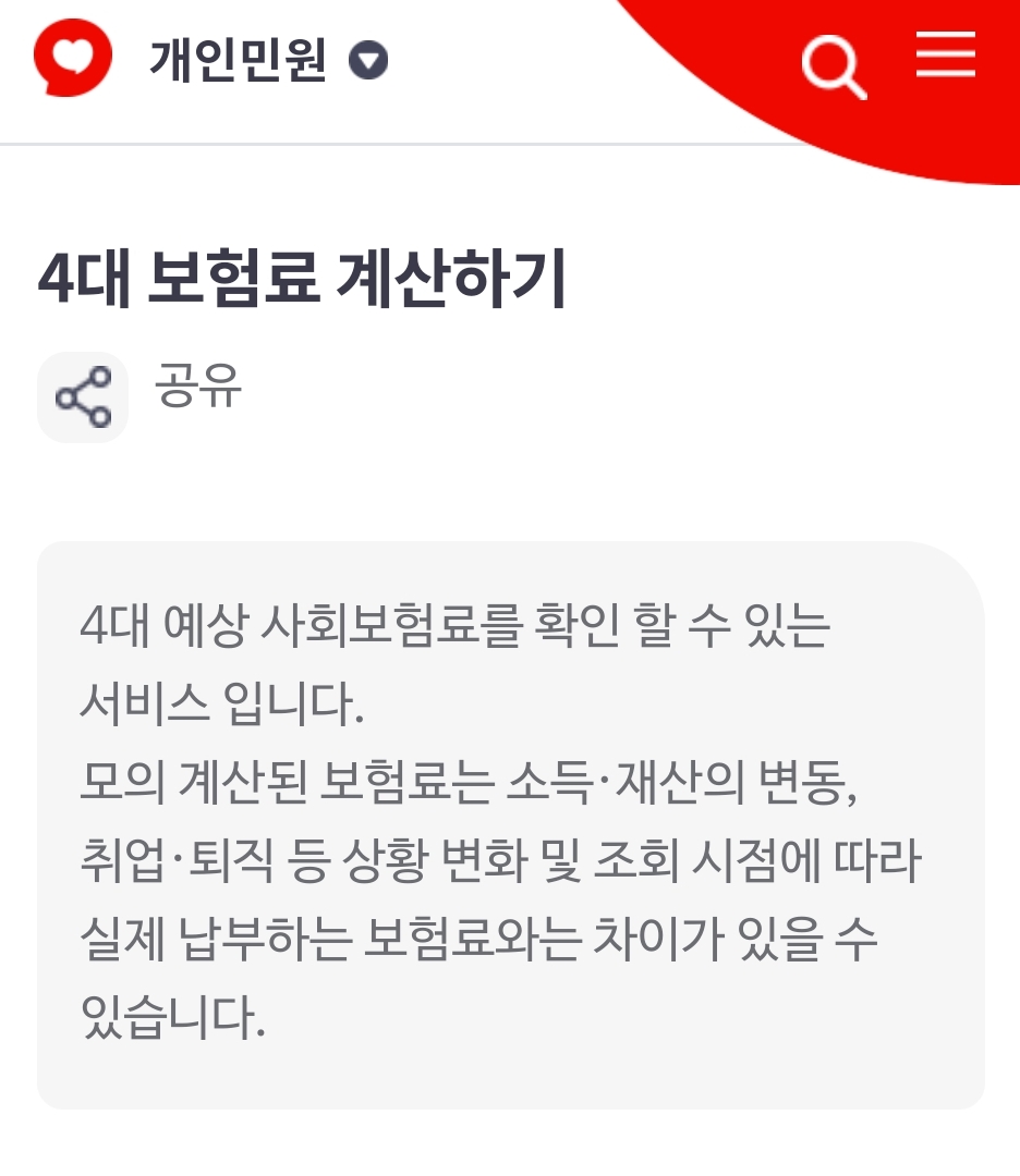 4대 보험료 계산하기 < 보험료 조회/신청 < 개인민원 < 민원여기요 | 국민건강보험