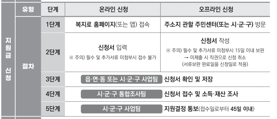 - 온라인: 복지로 홈페이지(www.bokjiro.go.kr) 또는 모바일 앱