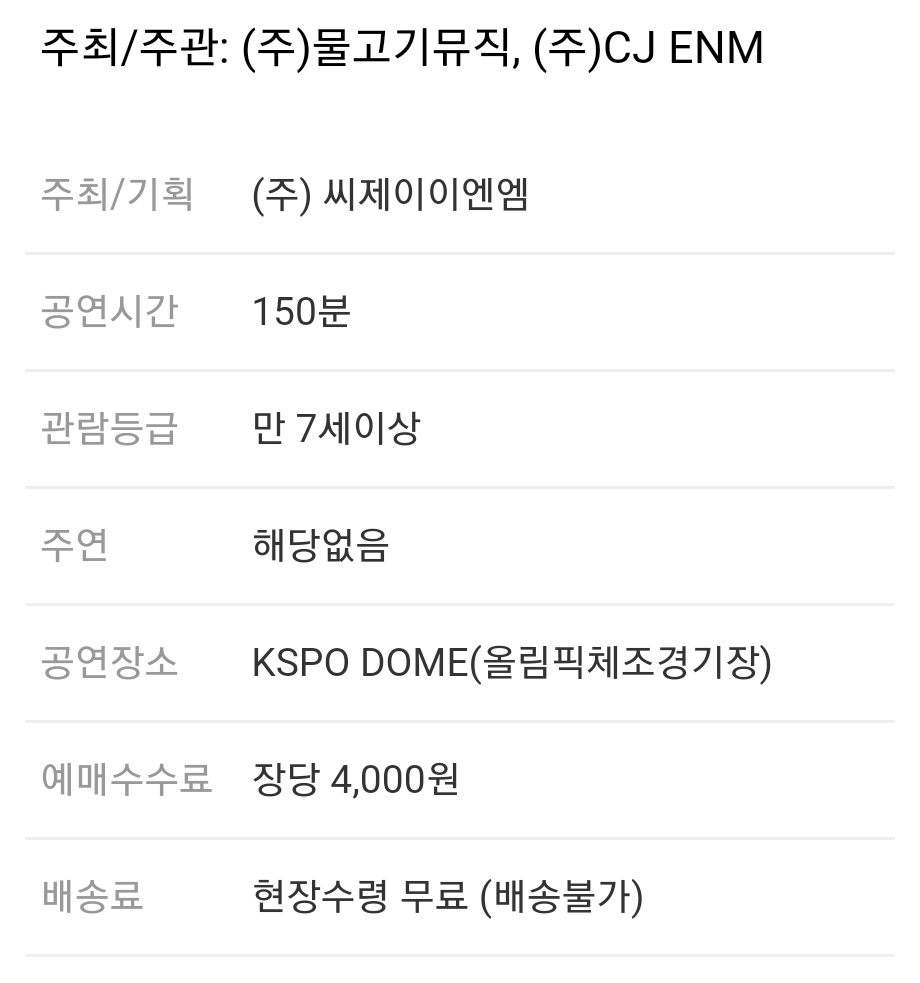 콘서트 기본 정보