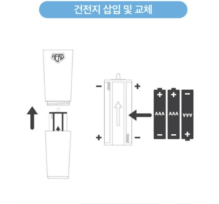 - 건전지는 정해진 규격 및 방향에 맞게 정확하게 설치해야 합니다.