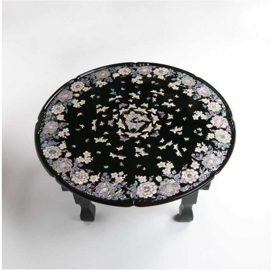 다소반 원형 접이식 자개 소반 자개상 교자상 조각연화반 블랙 : 다소반
