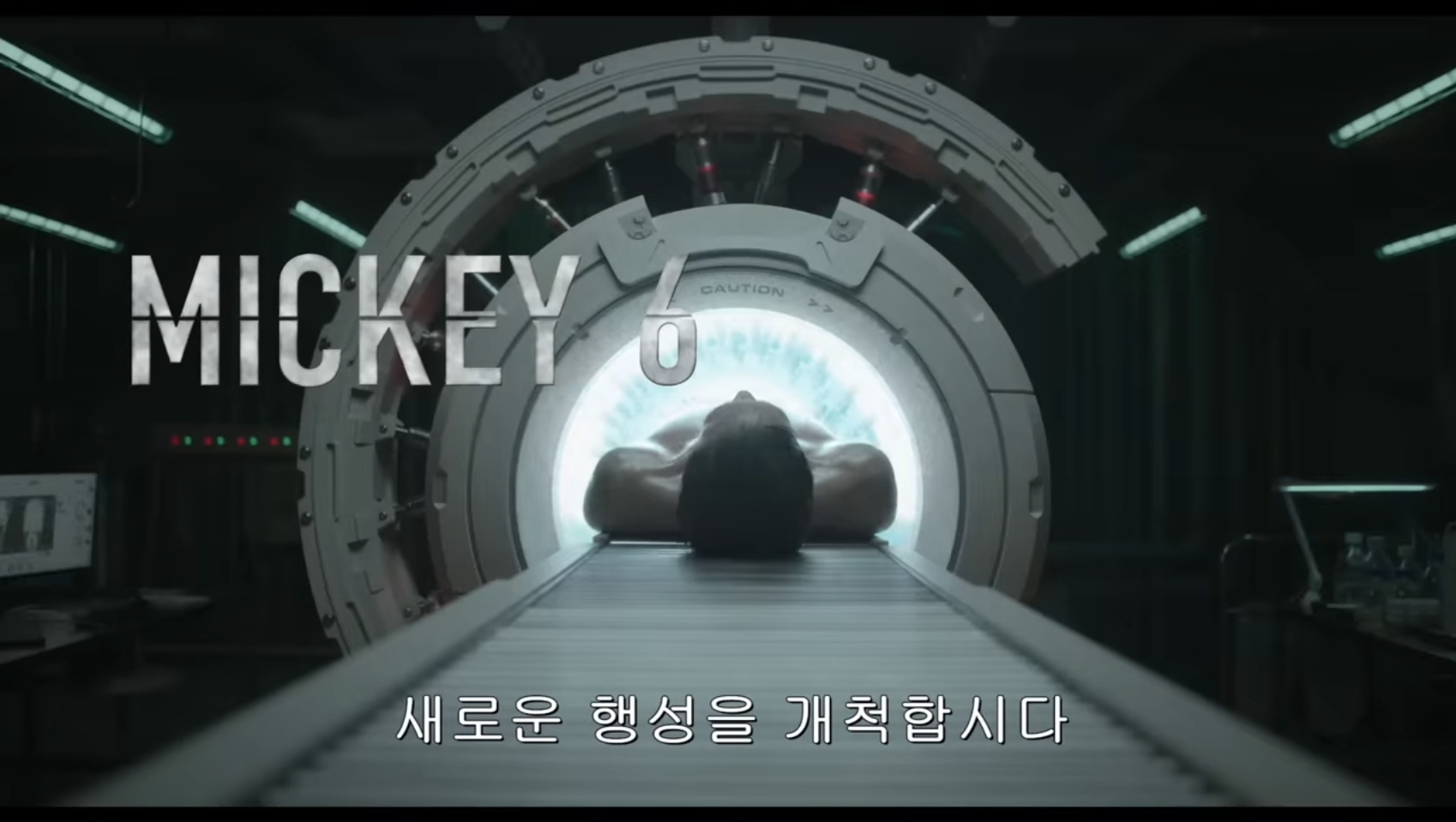 위험천만한 임무를 전담하며 순직을 거듭하는 것이 직업인 미키는 이미 여러 번 죽었다 다시 태어났고, 이야기 시작 시점에서 일곱 번째 삶을 살고 있습니다(“미키7” 이라는 원작 소설 제목도 여기서 유래합니다). 얼음 행성 탐사 중 사고로 깊은 균열에 추락한 미키7은 모두의 예측대로 사망한 줄로만 여겨집니다.