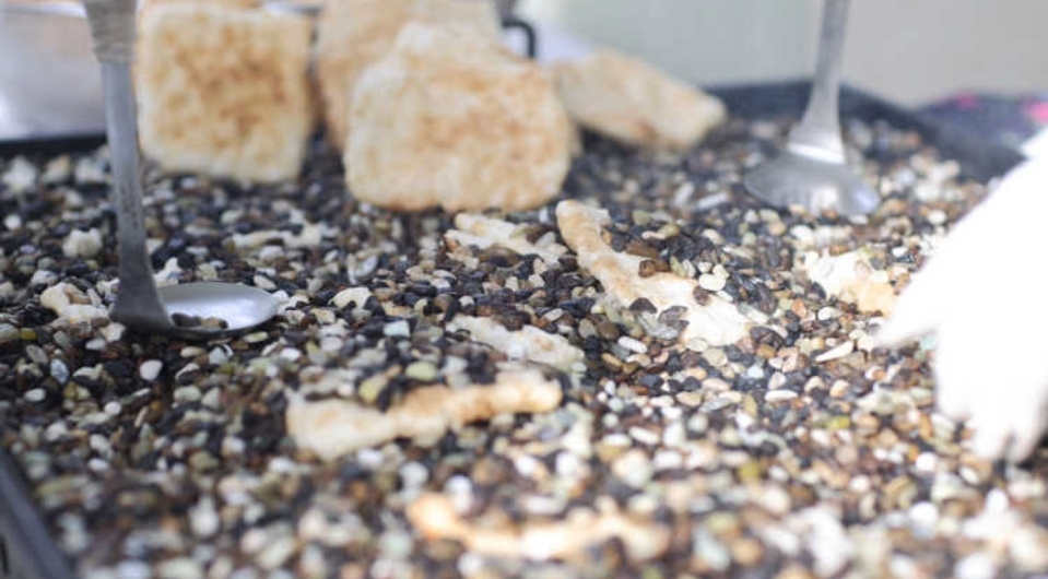 기름 대신 자갈로 굽는 방식을 사용합니다. 무쇠판 위에 자갈을 깔고 달궈서 그 위에 한과 반죽을 정성스레 하나씩 올려 구워집니다. 이 방식으로 구운 한과는 느끼한 맛이 없으며, 고소하고 담백한 맛이 특징입니다.