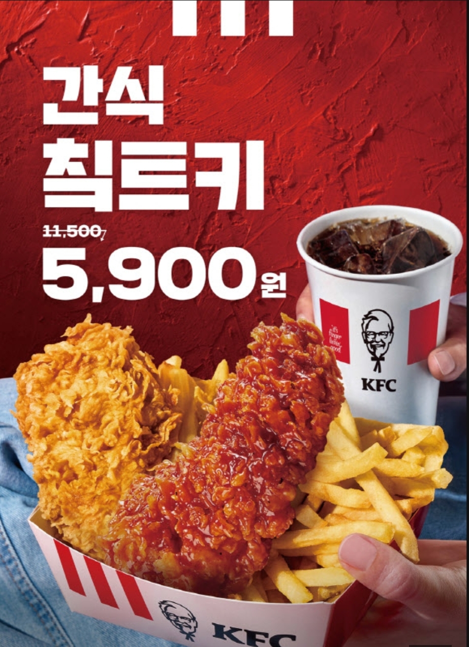 '간식 칰트키' 세트는 KFC의 인기 치킨 2조각, 바삭한 프렌치프라이, 시원한 콜라까지 한 세트로 구성됩니다.