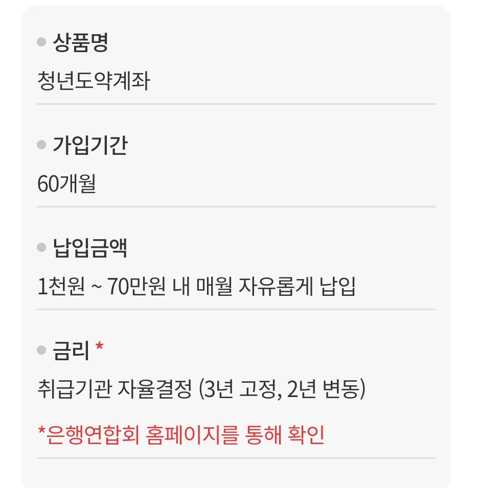 1인 1계좌만 가능 (기존 청년희망적금과 중복 가입 불가)