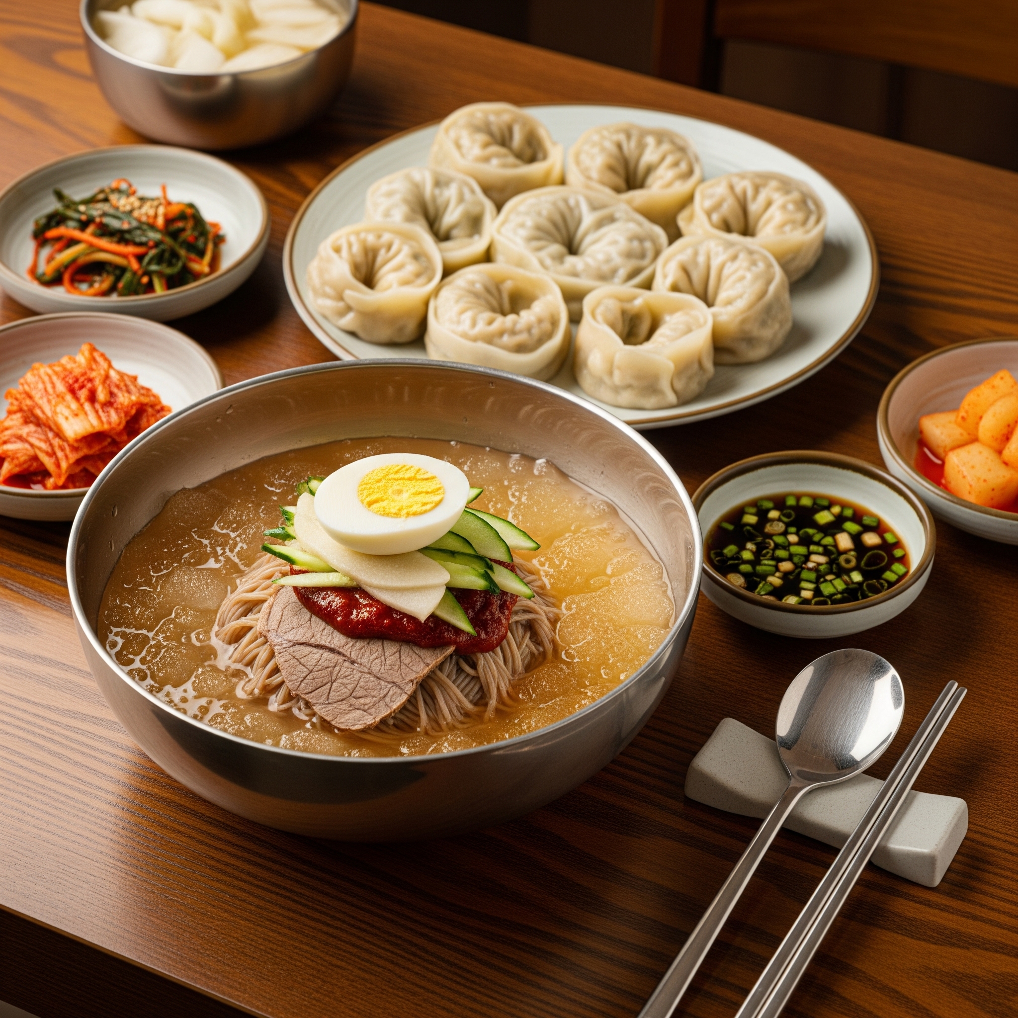 이곳의 대표 메뉴는 당연히 밀면입니다. 살얼음이 동동 띄워진 시원한 육수와 쫄깃하면서도 부드러운 면발이 완벽한 조화를 이룹니다.