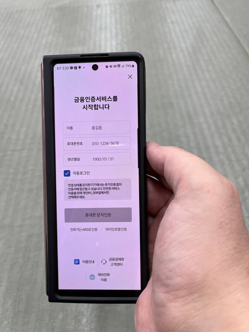 이름, 휴대폰번호, 생년월일 정보를 입력합니다.