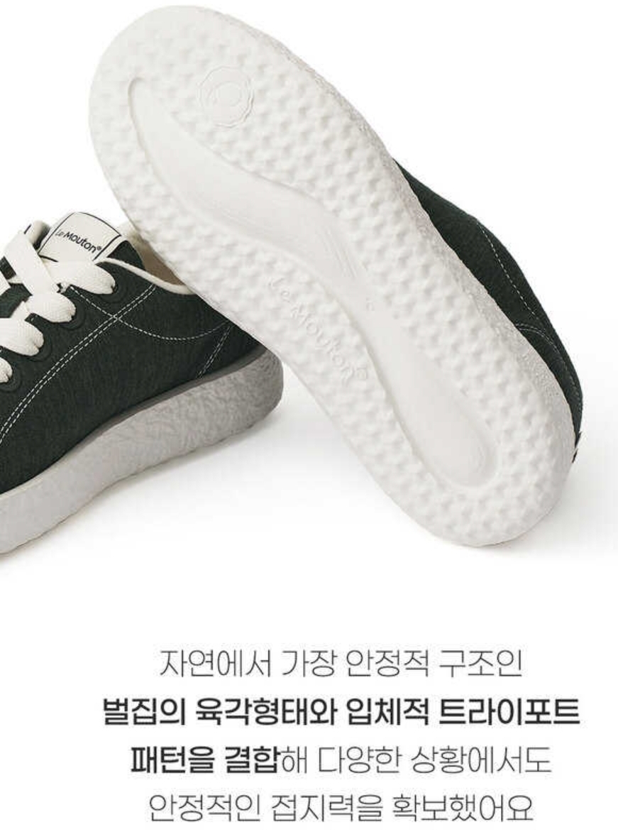리사이클 소재로 제작되었으며, 아웃솔은 산화생분해성 소재로 만들어짐.