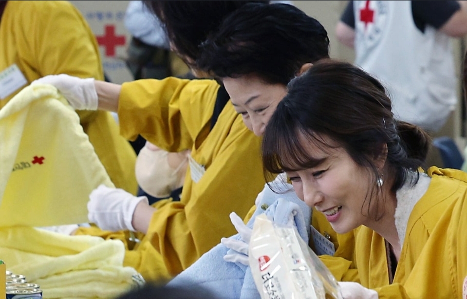 15일 오전 서울 중구 소파로 대한적십자사 서울사무소 앙리뒤낭홀에서 열린 사랑의 선물 제작 행사에 참여한 진은정 변호사는 취약계층 어르신과 아동청소년을 위한 선물 꾸러미 제작에 직접 손을 보탰습니다.
